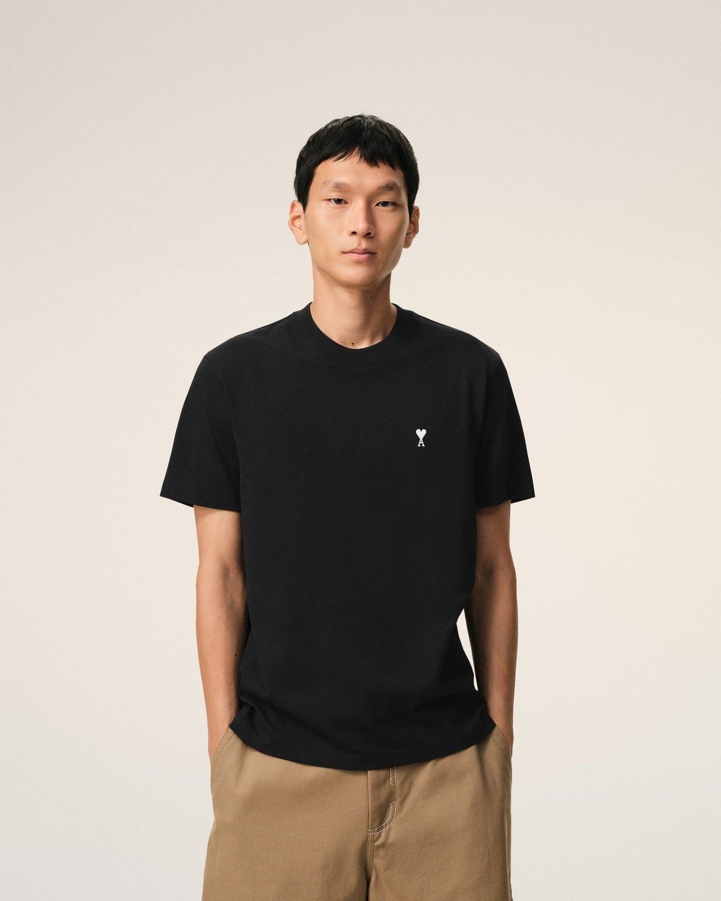 T-shirt Ami de Coeur d'AMI PARIS, confectionné en jersey de coton léger pour un confort optimal et une respirabilité supérieure. Cette pièce incontournable arbore une coupe classique intemporelle, parfaitement adaptée à une garde-robe contemporaine. Le design signature de la maison se manifeste par une broderie Ami de Coeur blanc crème délicatement positionnée sur la poitrine, tandis qu'une broderie ton sur ton orne subtilement l'encolure au dos. Chaque détail reflète l'expertise artisanale de la marque. Fabriqué au Portugal avec un savoir-faire reconnu, ce t-shirt allie qualité de matière et finitions raffinées pour une durabilité remarquable. Un basique de luxe qui transcende les saisons et les tendances.