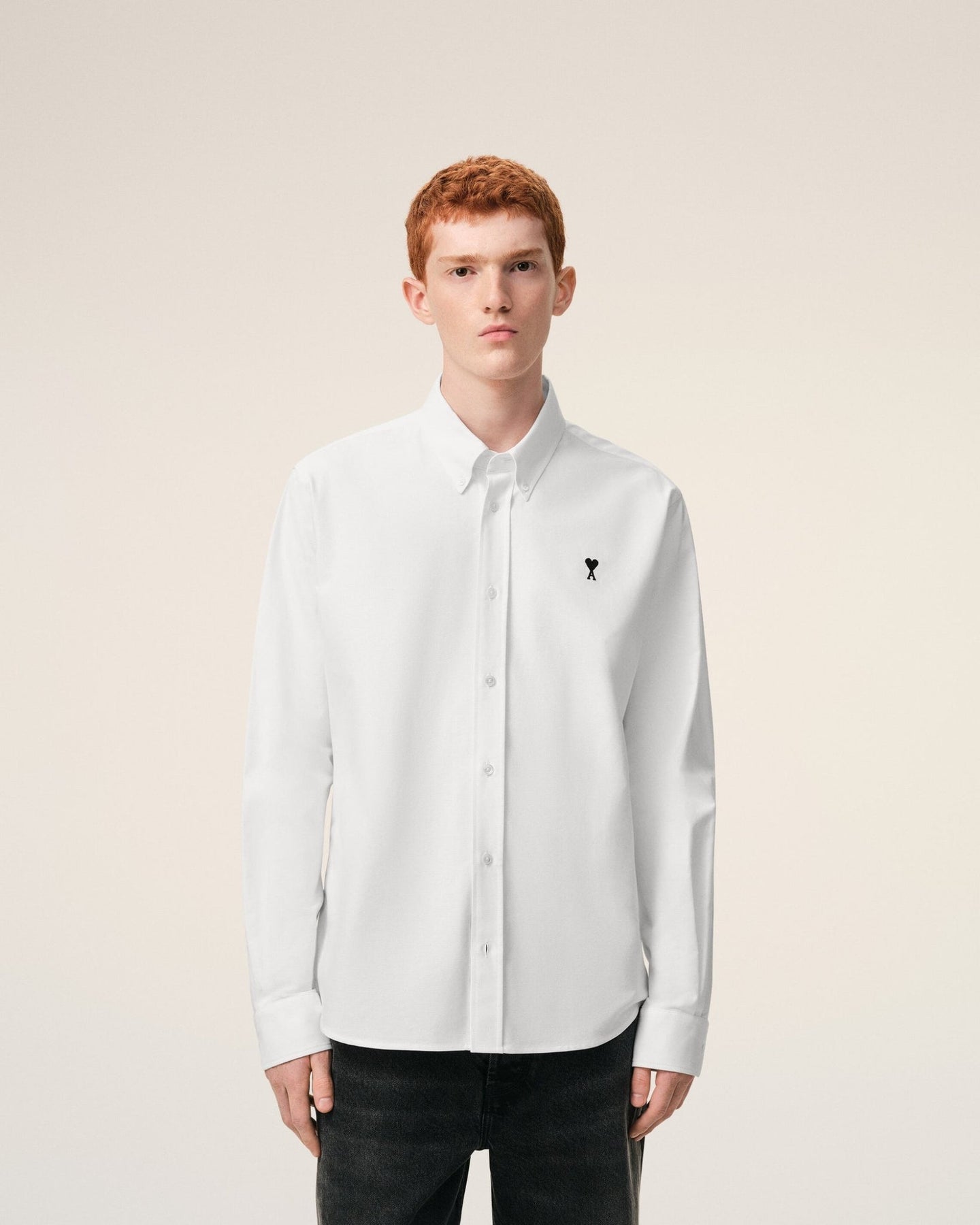 AMI PARIS - Chemise Boutonnée Ami de Coeur en Coton Oxford Blanc naturel
