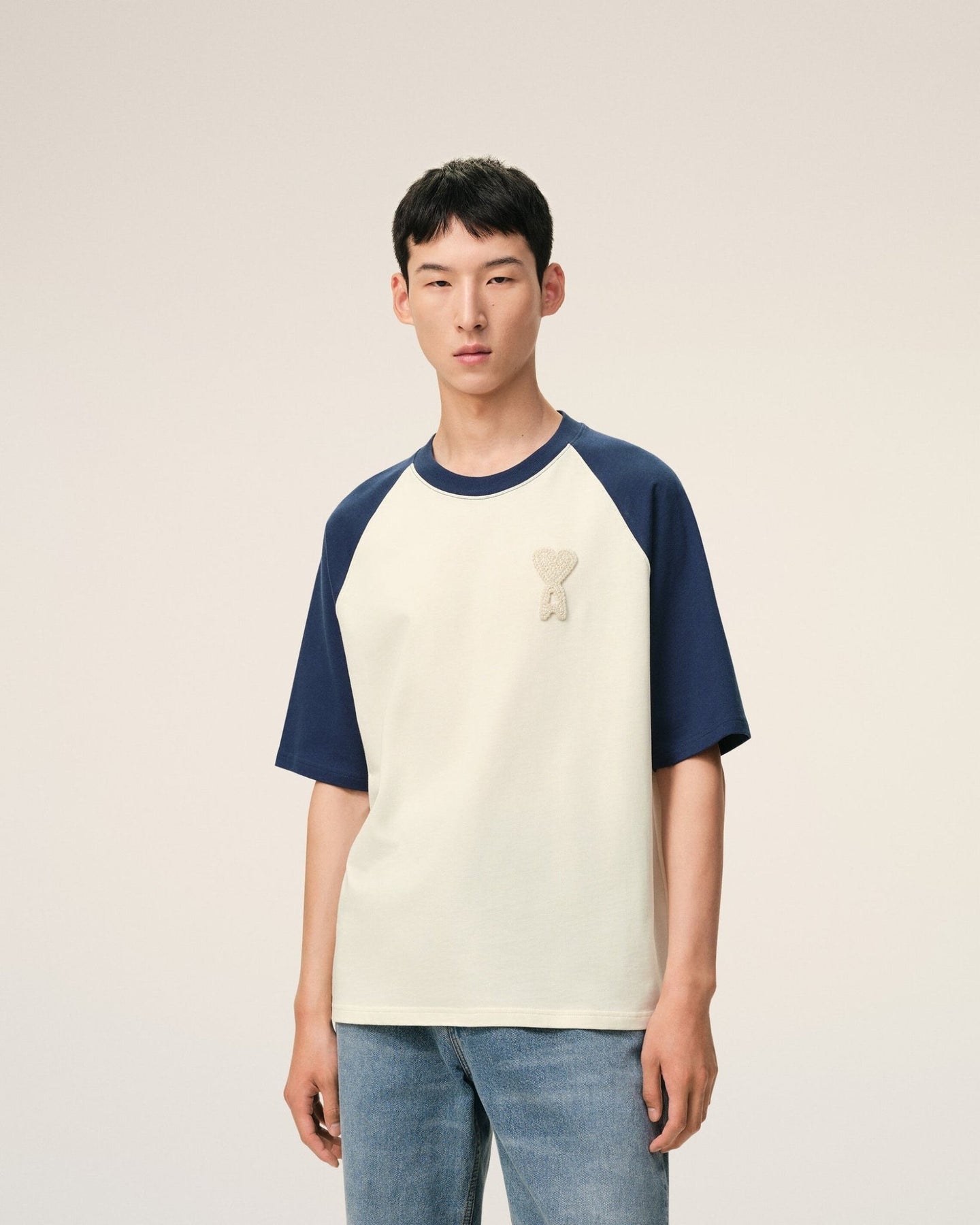 Découvrez ce t-shirt signature d'Ami Paris, confectionné en jersey de coton épais bicolore qui allie confort et durabilité. Ce modèle unisexe arbore une coupe carrée distinctive avec des manches raglan pour une silhouette moderne et flatteuse. L'écusson crochet Ami de Coeur brodé sur la poitrine constitue un détail emblématique de la maison, tandis que la broderie Ami ton sur ton sous l'encolure dos ajoute une touche de raffinement discret. Fabriqué au Portugal avec soin, ce basique incontournable se distingue par sa qualité de fabrication exceptionnelle et son design épuré. Parfait pour créer des looks variés, du casual au smart-casual, ce t-shirt incarne l'essence de l'esthétique Ami Paris : minimaliste, intemporelle et résolument chic.