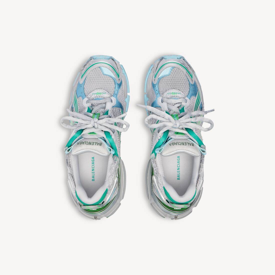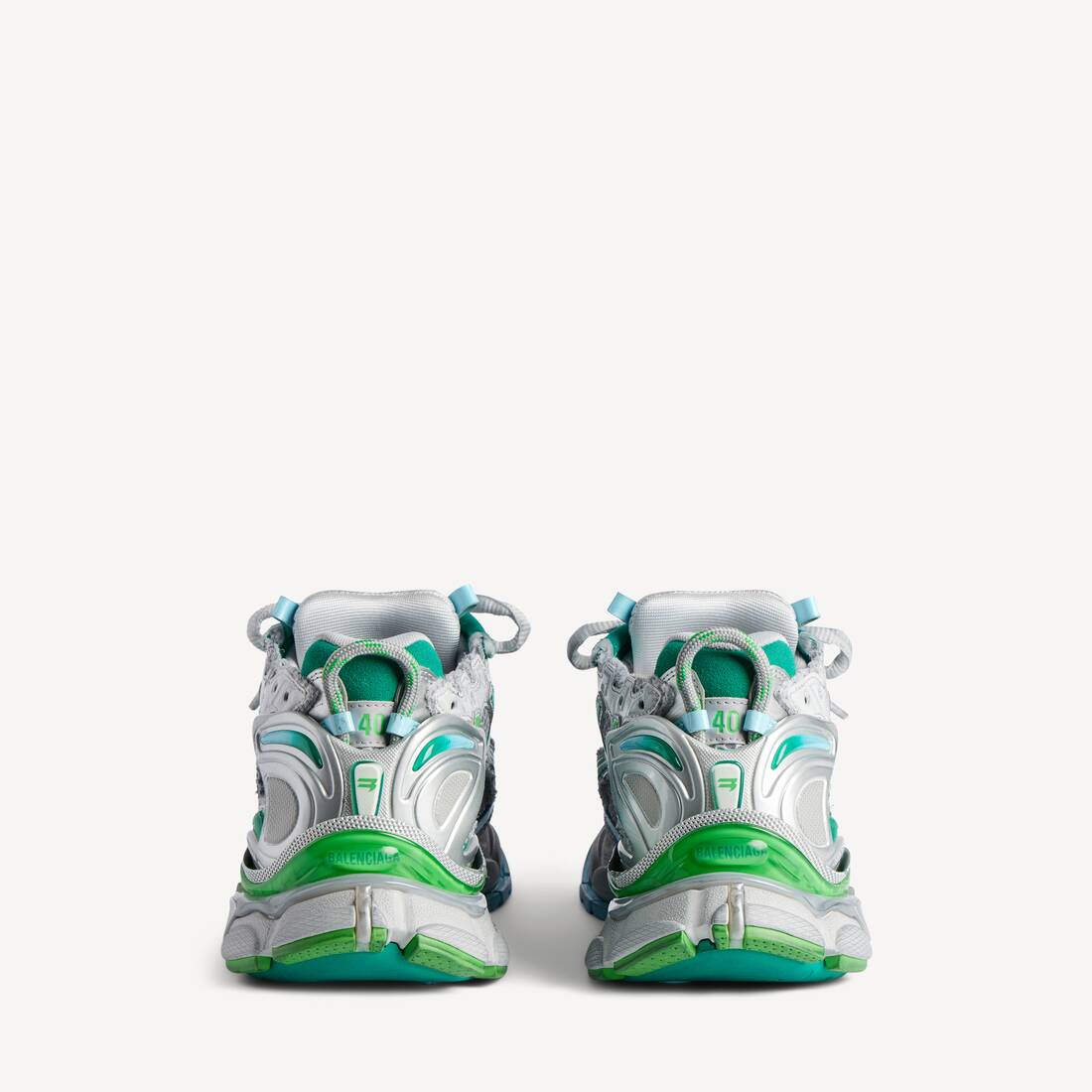 Découvrez la BALENCIAGA Men's Runner Sneaker Vert, une basket contemporaine qui allie style urbain et confort fonctionnel. Conçue sans matière cuir, cette sneaker arbore une construction en polyuréthane et polyester avec un effet usé distinctif qui renforce son caractère authentique. Cette silhouette signature Balenciaga se distingue par ses détails soignés : pointure imprimée sur le bout et en relief à l'arrière pour une lisibilité optimale, logo Runner imprimé sur le côté, et branding Balenciaga brodé sur la languette ainsi qu'au talon. La languette d'enfilage renforcée à l'arrière facilite l'enfilage quotidien. La structure technique combine une semelle extérieure en caoutchouc, TPU et EVA pour une adhérence et une durabilité supérieures, tandis que la semelle intérieure en mousse assure un amorti confortable tout au long de la journée. Fabriquée en Chine selon les standards Balenciaga, cette basket verte incarne l'excellence du design sportif contemporain.