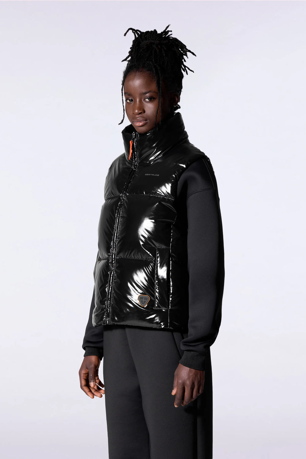 GERTRUDE - Doudoune puffy brillante sans manches Galilée Noir