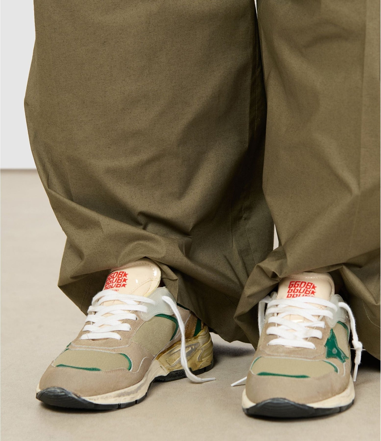 GOLDEN GOOSE FEMME - Baskets Running Dad Blanc/Taupe/Vert
