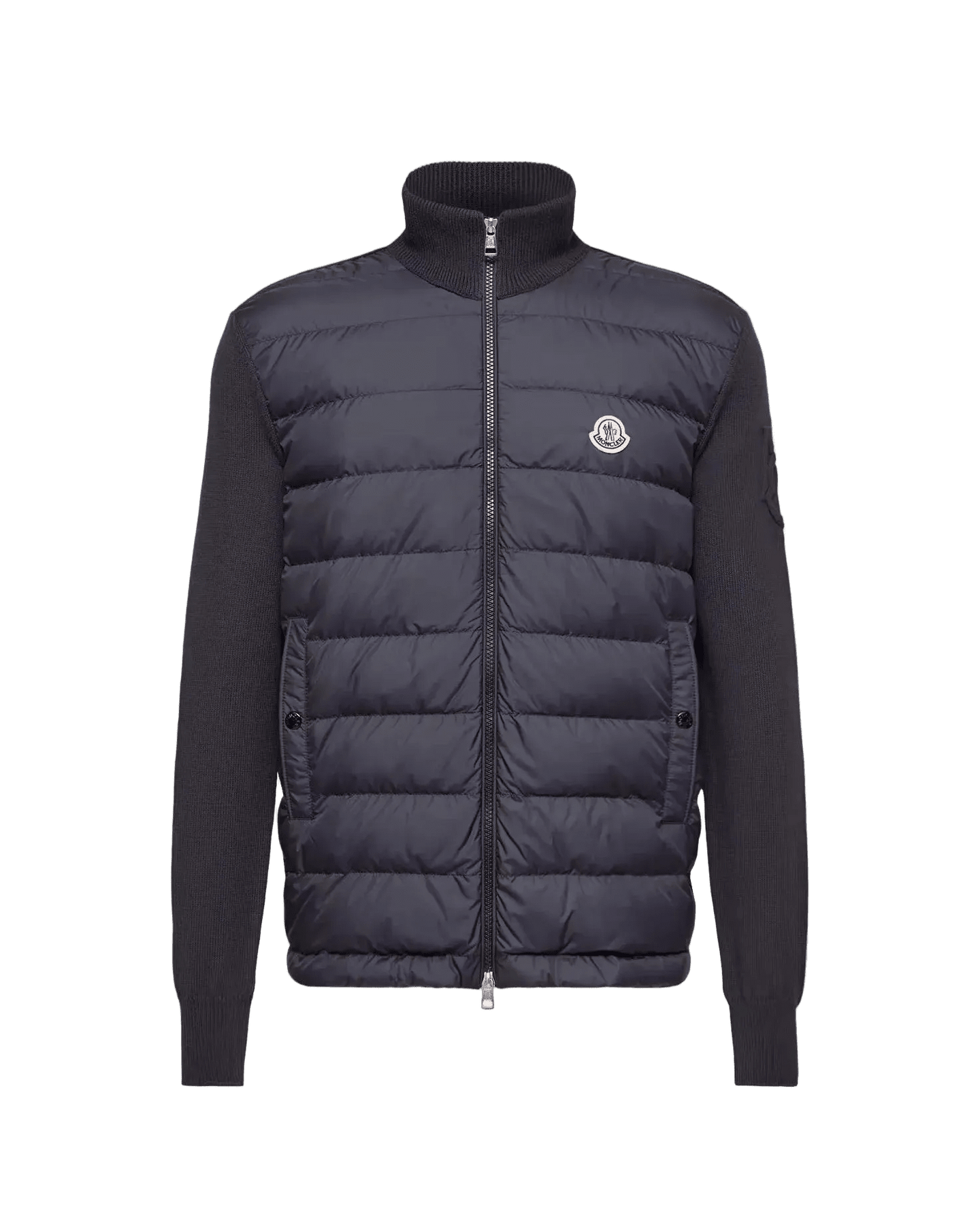 Facilement porté comme un cardigan ou une veste, ce modèle à col montant pour homme se distingue par un matelassage en duvet sur le devant pour plus de chaleur.