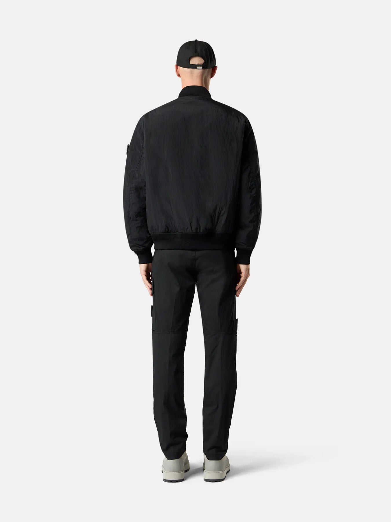 Poches mains verticales à glissière dissimulée. Poche à bouton-pression sous rabat fixe au dos. Poche à soufflet et à rabat sur chaque jambe avec boutons-pression dissimulés ; la poche gauche est ornée du badge Stone Island. Genoux galbés. Braguette zippée et boutonnée. Coupe fuselée regular.