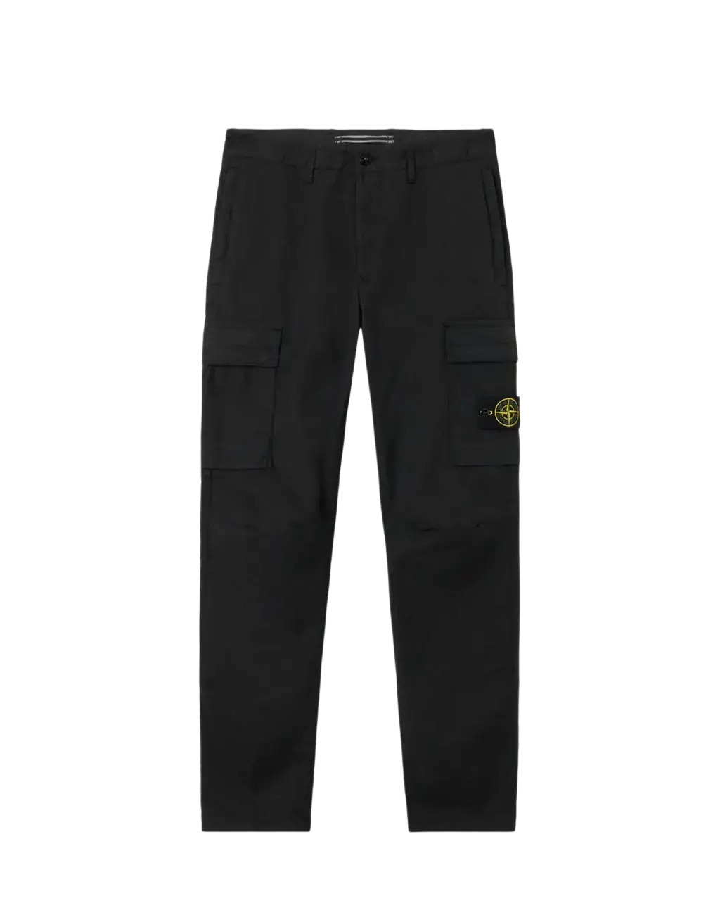 Pantalon cargo en sergé de coton extensible Supima®, confectionné à partir de fil de coton Supima® mercerisé et élastiqué dans la trame pour un confort optimal. Supima® - Superior Pima - certifie l'origine américaine des cotons Pima, l'une des variétés les plus prestigieuses grâce à la longueur, l'uniformité et la résistance exceptionnelles de ses fibres. Cette coupe fuselée regular épouse élégamment la silhouette tout en offrant une liberté de mouvement. Les poches zippées latérales assurent la sécurité de vos affaires, tandis que la teinte noire intemporelle s'adapte à tous les styles. Teinture en pièce pour une profondeur de couleur homogène et durable. Un basique de qualité supérieure signé Stone Island.