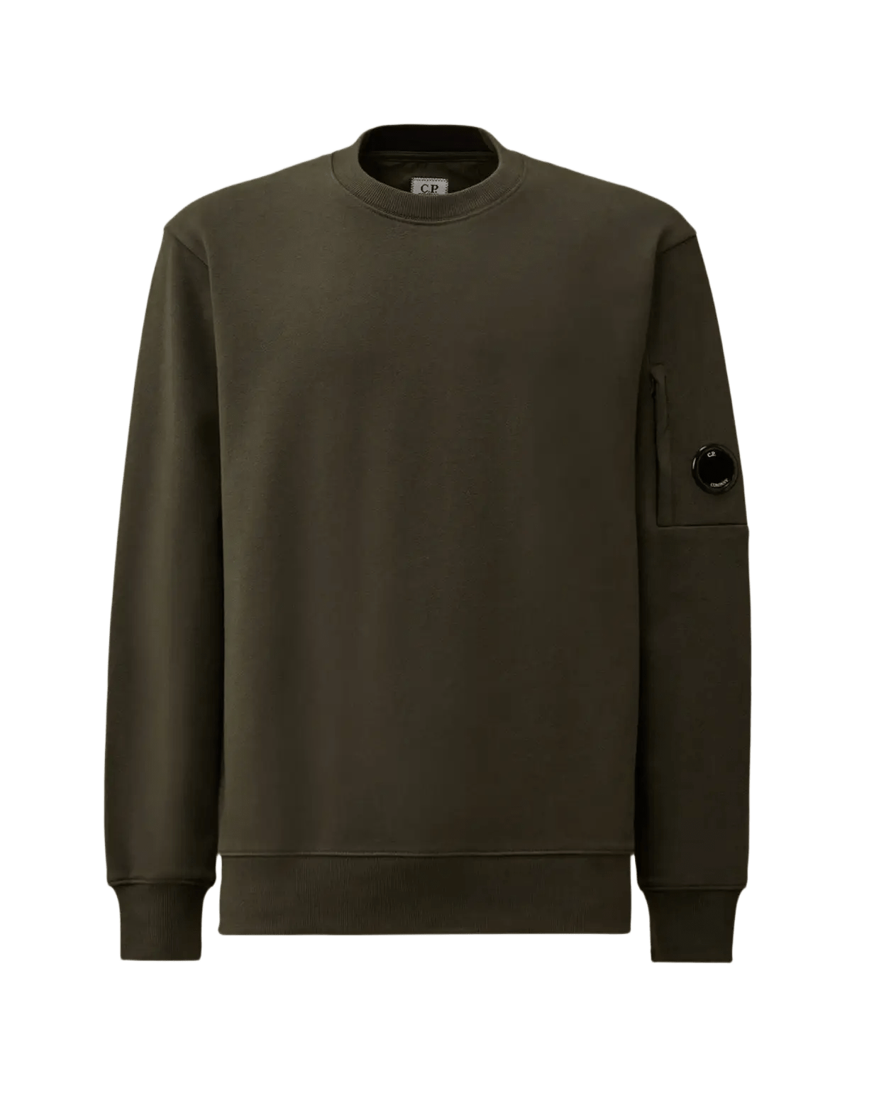 Sweat rasé du cou confectionné en polaire à relief diagonal, un coton brossé à tissage diagonal de poids moyen. Le tissu doux assure le confort et la facilité de mouvement. Le sweat-shirt est orné d'un logo brodé sur le col arrière, de la lentille emblématique de C.P. Company, et de poignets et d'un ourlet côtelés. Coupe régulière.