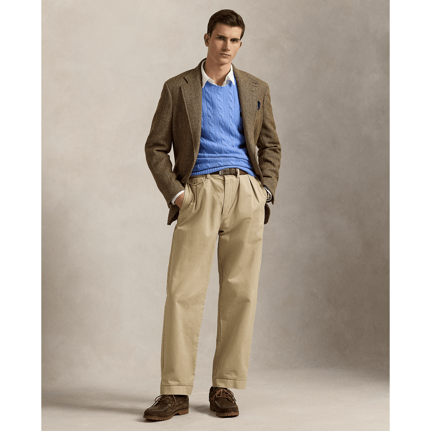 Cette interprétation de notre emblématique pull en tricot torsadé est confectionnée en fil italien tissé avec de la laine et du cachemire.