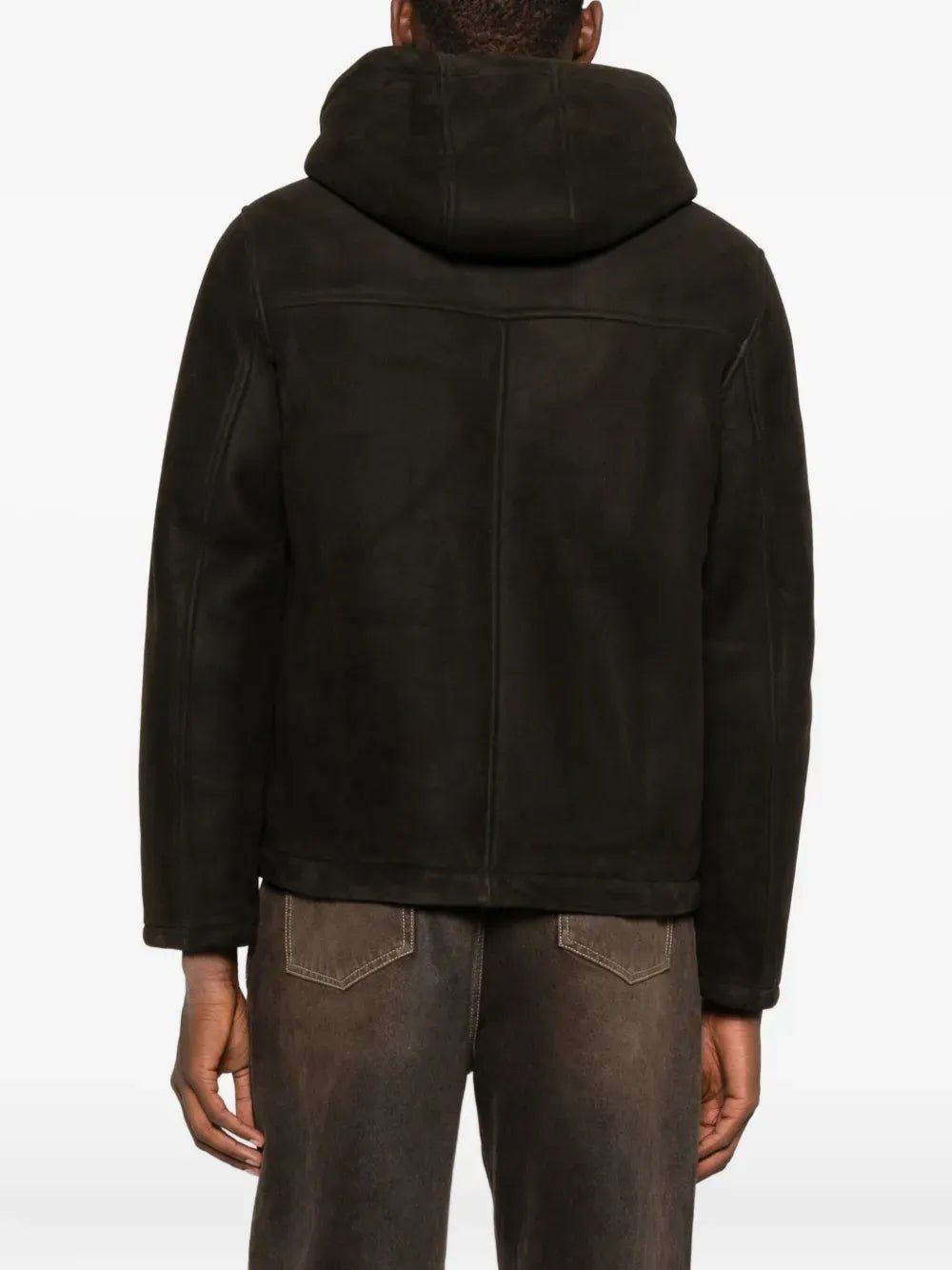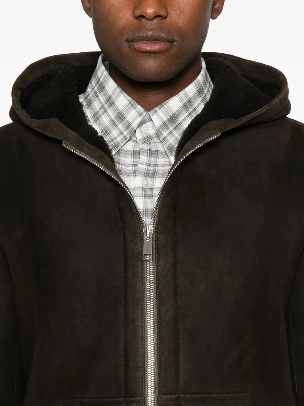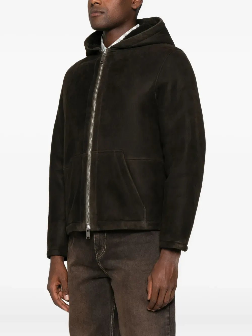 YVES SALOMON - Veste zippée à capuche en peau retournée marron