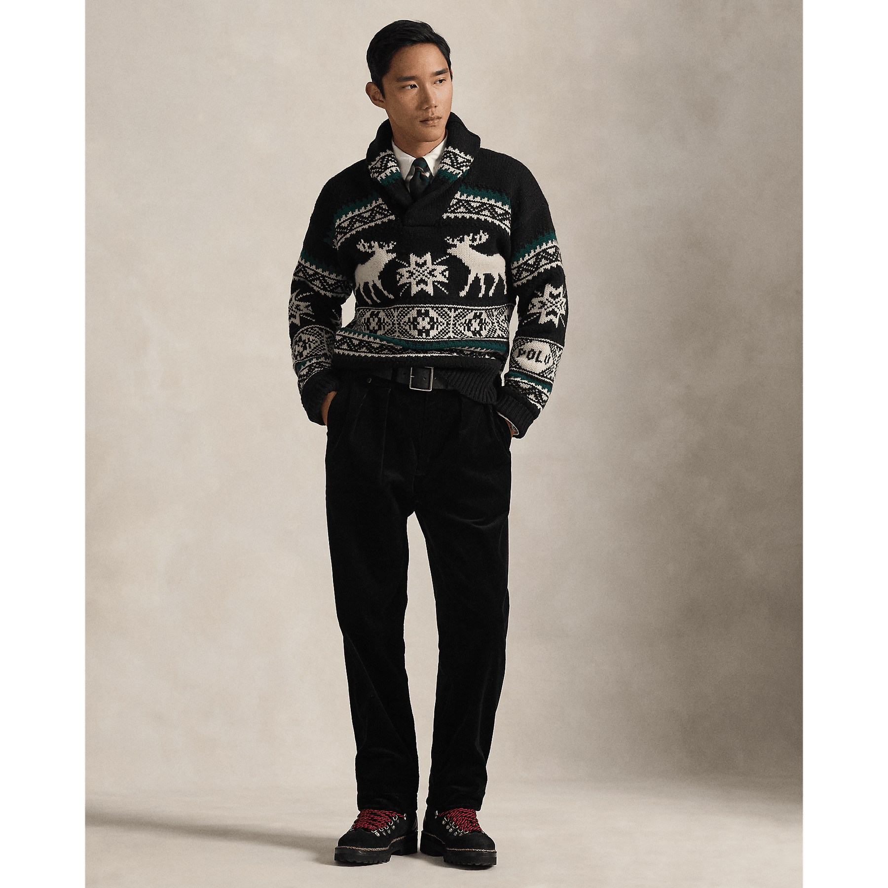POLO RALPH LAUREN - Pull graphique Élan en laine mélangée Black combo - Lothaire