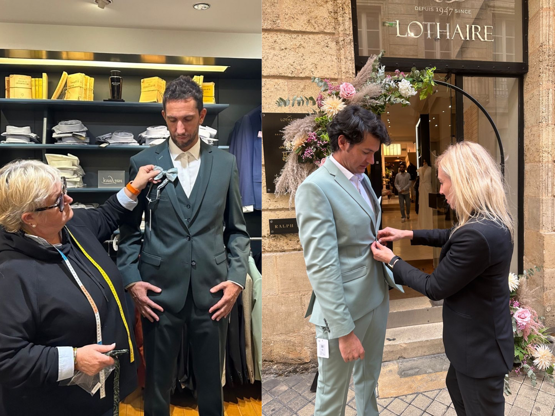 Et pour bien choisir, il faut du calme et du temps. C'est pourquoi, chez Lothaire, sur rendez-vous, nous privatisons notre espace costume pour que vous puissiez prendre le temps d'essayer, à votre aise.
