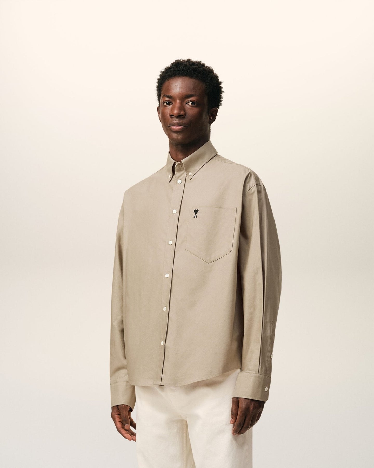 AMI PARIS - Chemise Ami de Coeur Brodée en Coton Beige - Lothaire