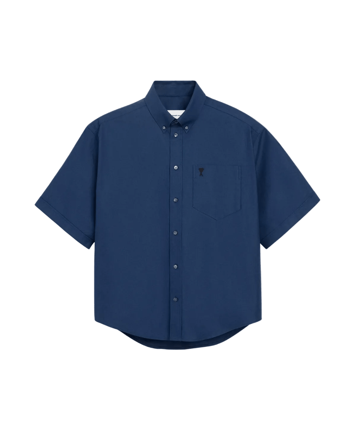 Chemise à manches courtes boutonnée Ami de Coeur en coton oxford uni, incarnant l'esthétique minimaliste et intemporelle de la maison parisienne. Coupe carrée généreuse offrant un confort optimal et une silhouette décontractée. La broderie Ami de Coeur noire, signature emblématique de la marque, orne délicatement la poitrine. Col boutonné structuré assurant une tenue impeccable. Boutons en nacre véritable ajoutant une touche de raffinement discret. Confectionnée en coton oxford de qualité supérieure, cette pièce allie durabilité et douceur au toucher. Idéale pour composer des looks casual sophistiqués, elle se décline en bleu encre, une teinte classique et polyvalente. Un basique de garde-robe revisité avec l'élégance caractéristique d'Ami Paris.
