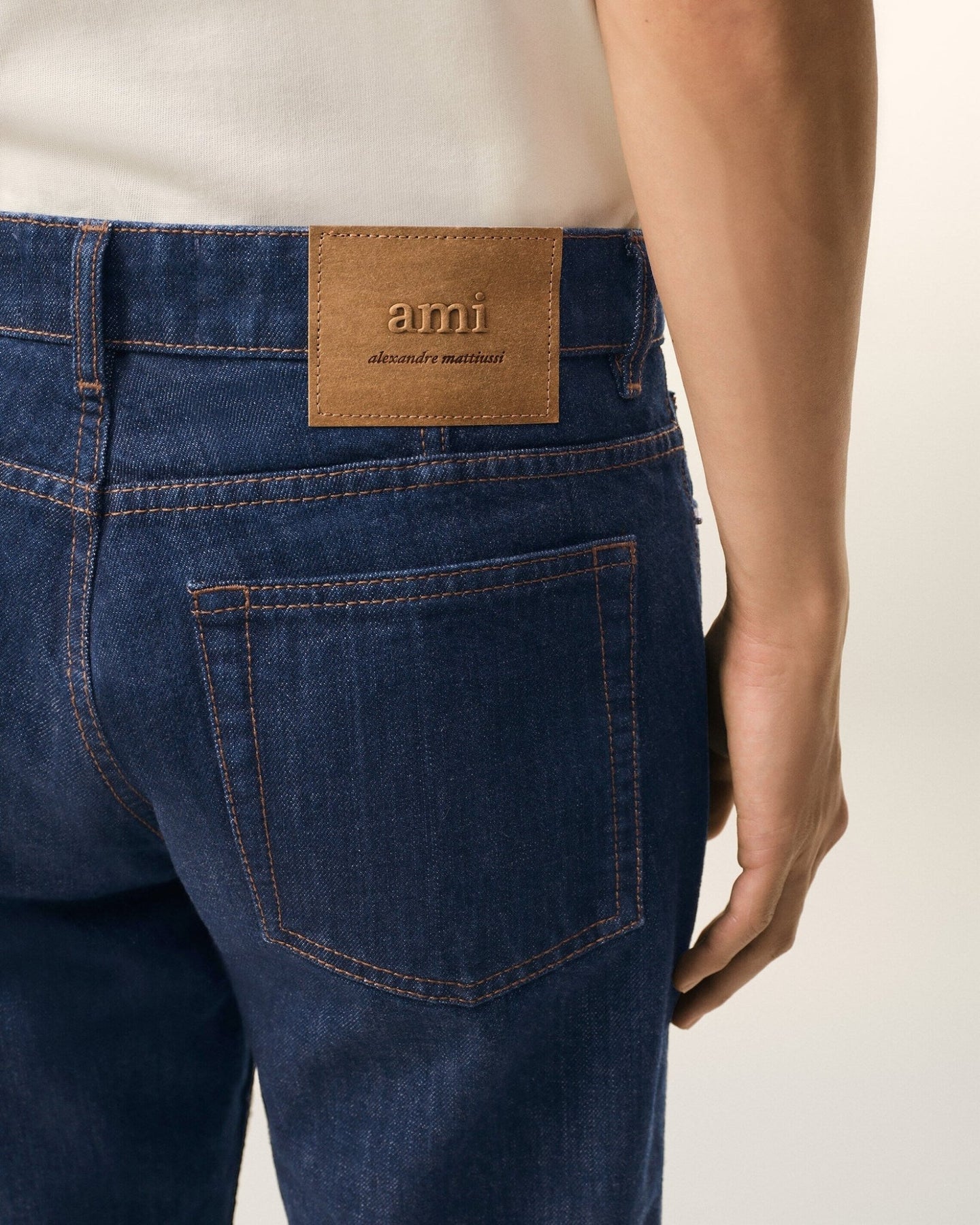Jean incontournable d'AMI PARIS confectionné en denim indigo brut de qualité supérieure. Cette pièce incarne l'élégance minimaliste avec sa coupe classique épousant naturellement la silhouette, dotée d'une taille normale et de jambes ajustées pour un confort optimal. Les détails de finition révèlent un savoir-faire raffiné : quincaillerie en nickel, surpiqûres tabac contrastées et jacron signature « ami alexandre mattiussi » au dos. La construction traditionnelle à 5 poches et braguette boutonnée garantit une durabilité éprouvée. Fabriqué au Portugal selon les standards exigeants de la maison, ce jean se distingue par sa matière brute qui développera une patine unique au fil du temps, témoignant de son authenticité et de sa qualité intemporelle.